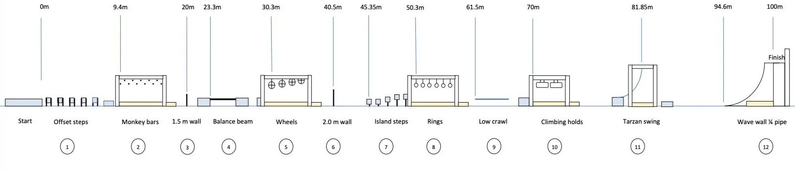 The 12 standard obstacles and structures are (in order):